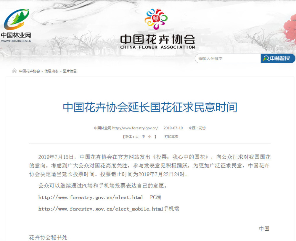 中国花协延长国花征求民意时间 投票截止为22日24时