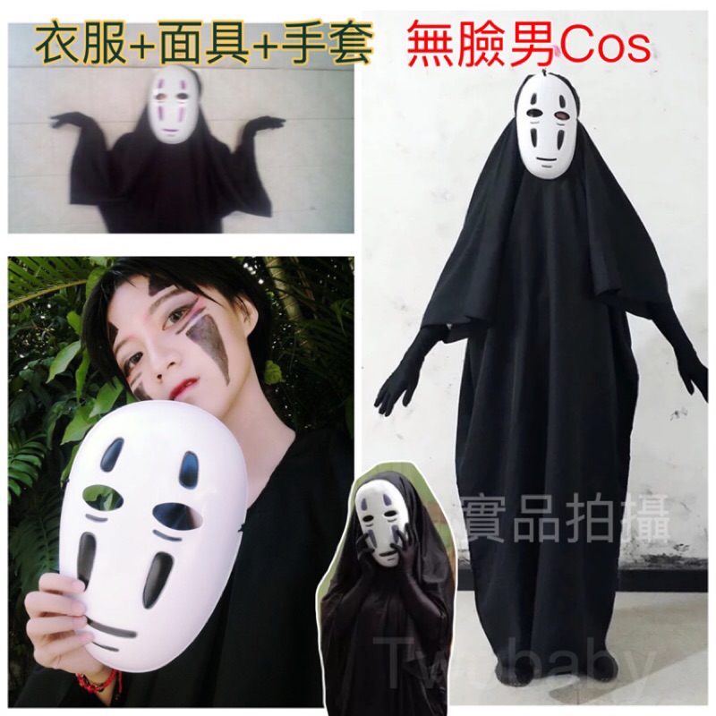 現貨千與千尋無臉男cosplay服裝動漫服裝無臉面具鬼服萬圣節披風cos服 蝦皮購物